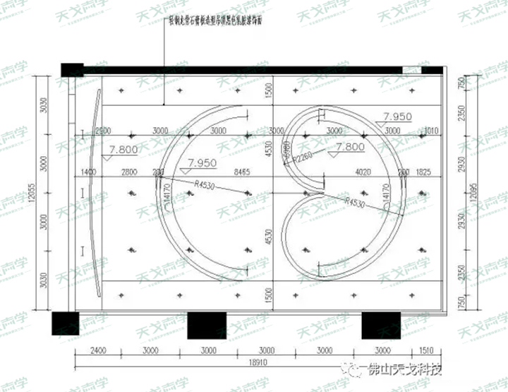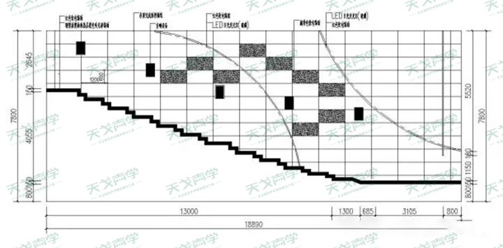 2、該場館長、寬尺寸較大,產(chǎn)生回聲明顯。將嚴(yán)重干擾前排座位的聽覺效果。因此必須要進(jìn)行專業(yè)的聲學(xué)處理。