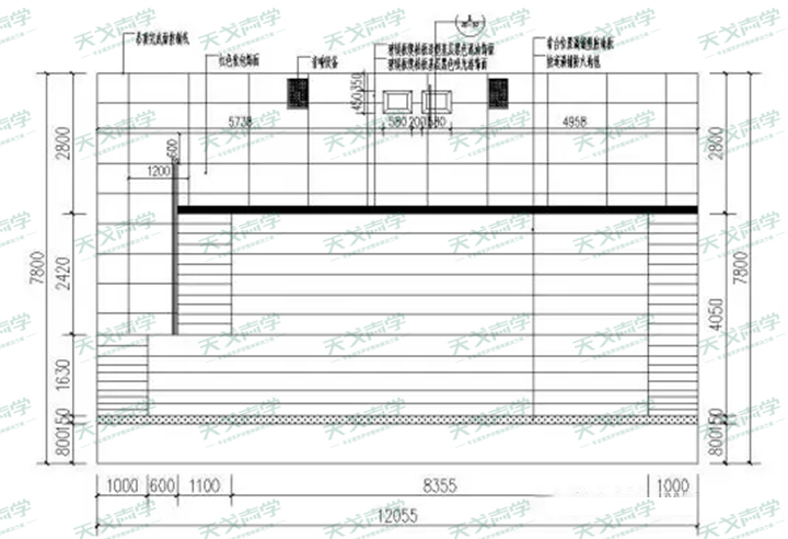根據(jù)專業(yè)軟件計算及綜合到墻面,地面材料的墻面,天花不必采用強(qiáng)吸音材料,因此考慮成本問題,建議天花進(jìn)行石膏板造型裝飾處理。