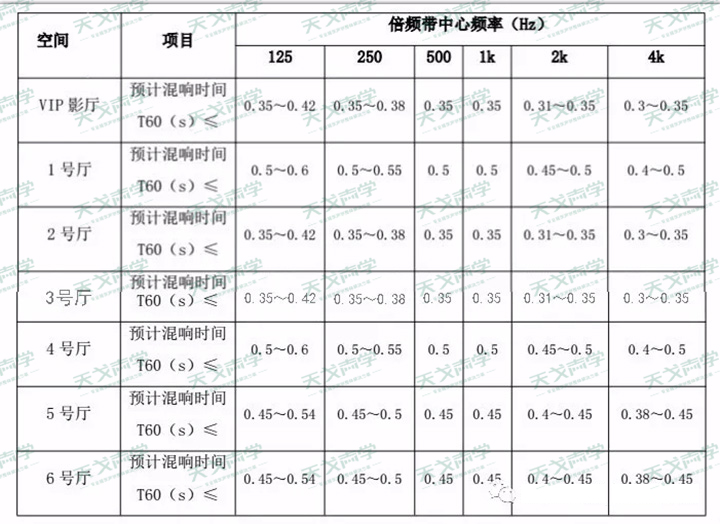 根據(jù)各影廳容積大小,設(shè)計目標(biāo)如下所示: