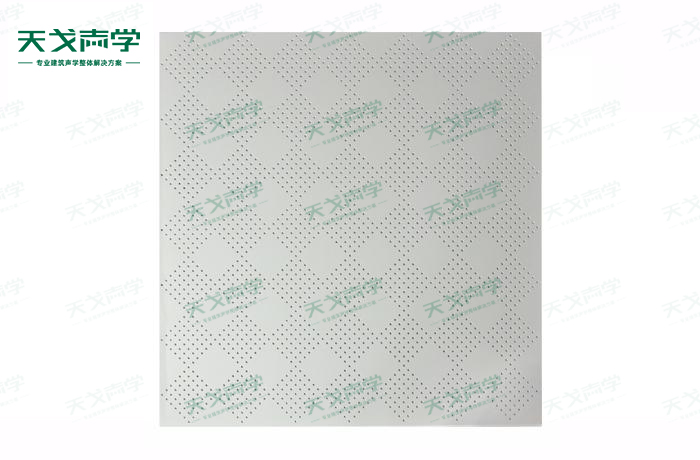 天戈微穿孔板吸音板是一種鋁合金穿孔板吸音板,飾面顏色及材料選擇性廣,孔徑、孔距可根據客戶要求調整,能很好地滿足客戶多樣化的聲學及裝飾需求。穿孔吸音板對吸聲頻譜選擇性較強,對中低頻有很好的吸聲性能。如在吸聲結構后空腔上填入適量的吸聲棉可提高中、高頻吸聲效果。