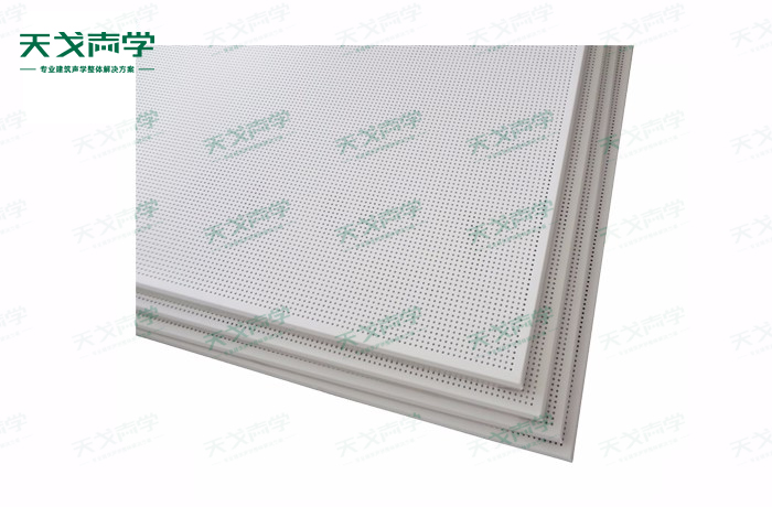 天戈鋁穿孔吸音板飾面顏色及材料選擇性廣,孔徑、孔距可根據(jù)客戶要求調(diào)整,能很好地滿足客戶多樣化的聲學(xué)及裝飾需求。穿孔吸音板對吸聲頻譜選擇性較強(qiáng),對中低頻有很好的吸聲性能。如在吸聲結(jié)構(gòu)后空腔上填入適量的吸聲棉可提高中、高頻吸聲效果。