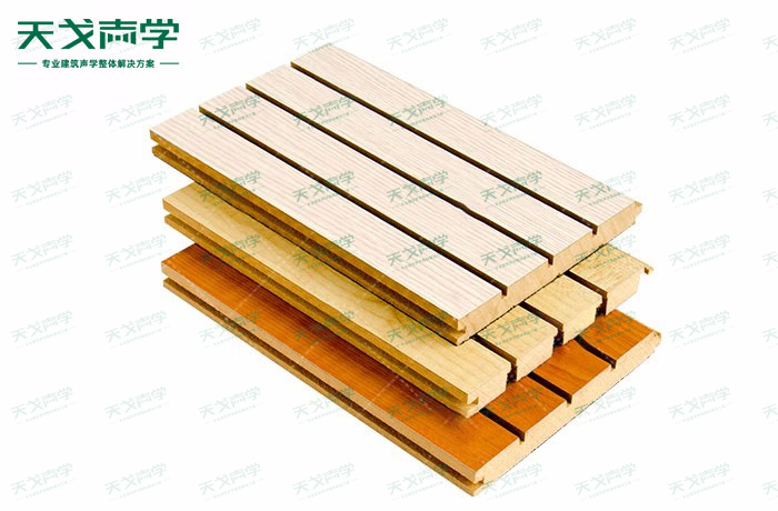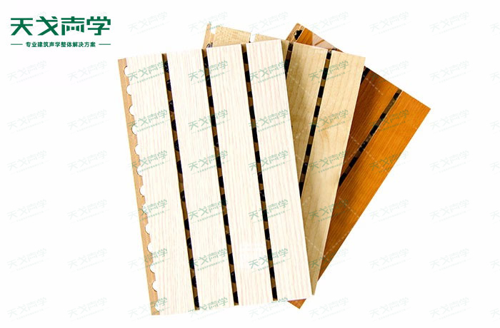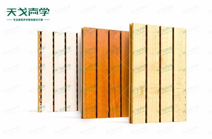 天戈環保槽木吸音材料是一種在密度板的正面開槽、背面穿孔的狹縫共振吸音材料。槽木吸音板對吸聲頻譜選擇性很強,對中低頻有很好的吸聲性能。若在吸聲結構后空腔填入適量的吸聲棉可提高中、高頻吸聲效果,標準化模塊設計,采用插槽、龍骨結構,安裝簡易,常用于墻面或天花裝飾。