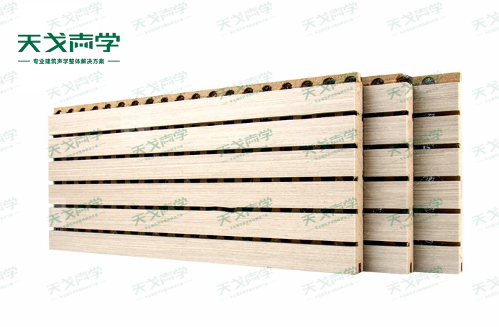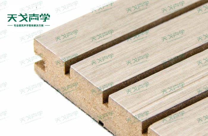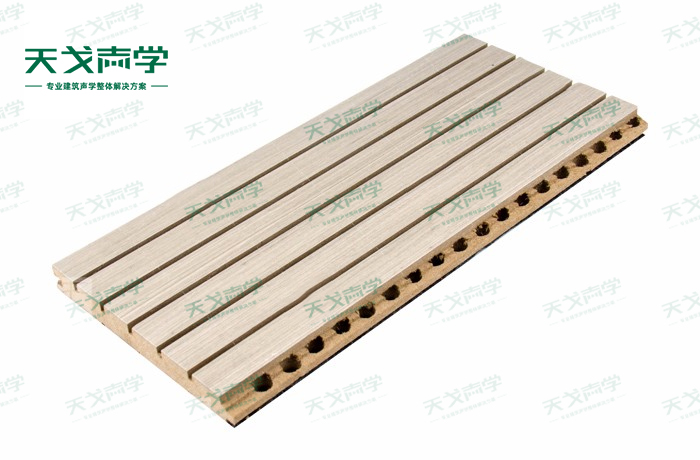 天戈槽孔吸音板是一種在密度板的正面開槽、背面穿孔的狹縫共振吸音材料。槽木吸音板對吸聲頻譜選擇性很強,對中低頻有很好的吸聲性能。若在吸聲結構后空腔填入適量的吸聲棉可提高中、高頻吸聲效果,標準化模塊設計,采用插槽、龍骨結構,安裝簡易,常用于墻面或天花裝飾。