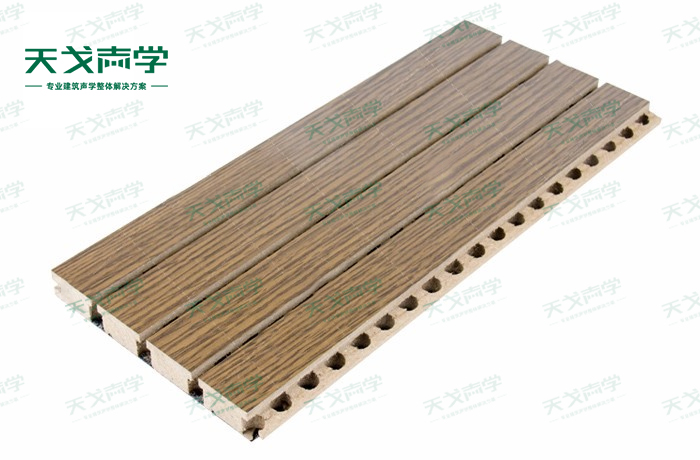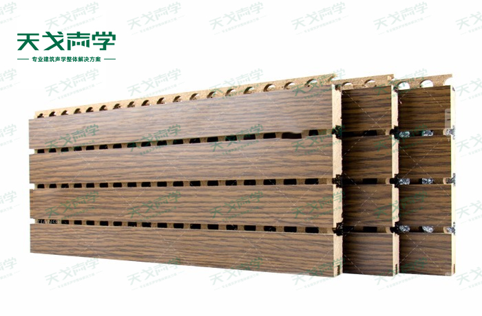 天戈木質槽條吸音板是一種在密度板的正面開槽、背面穿孔的狹縫共振吸音材料。槽木吸音板對吸聲頻譜選擇性很強,對中低頻有很好的吸聲性能。若在吸聲結構后空腔填入適量的吸聲棉可提高中、高頻吸聲效果,標準化模塊設計,采用插槽、龍骨結構,安裝簡易,常用于墻面或天花裝飾。