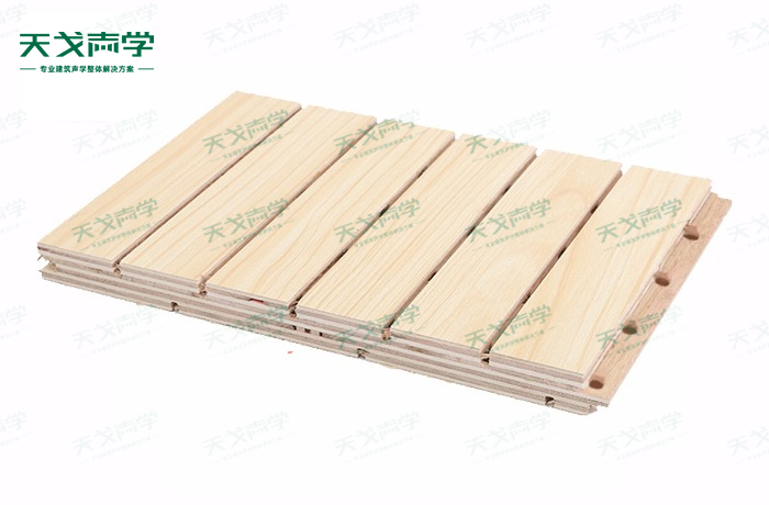 天戈演播室槽木吸音板是一種在密度板的正面開槽、背面穿孔的狹縫共振吸音材料。槽木吸音板對吸聲頻譜選擇性很強,對中低頻有很好的吸聲性能。若在吸聲結(jié)構(gòu)后空腔填入適量的吸聲棉可提高中、高頻吸聲效果,標準化模塊設(shè)計,采用插槽、龍骨結(jié)構(gòu),安裝簡易,常用于墻面或天花裝飾。