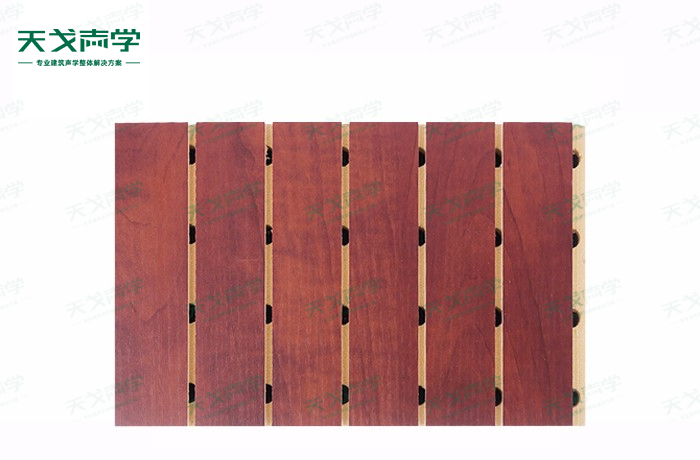 天戈電影院槽木吸音板是一種在密度板的正面開槽、背面穿孔的狹縫共振吸音材料。槽木吸音板對吸聲頻譜選擇性很強,對中低頻有很好的吸聲性能。若在吸聲結(jié)構(gòu)后空腔填入適量的吸聲棉可提高中、高頻吸聲效果,標準化模塊設計,采用插槽、龍骨結(jié)構(gòu),安裝簡易,常用于墻面或天花裝飾。
