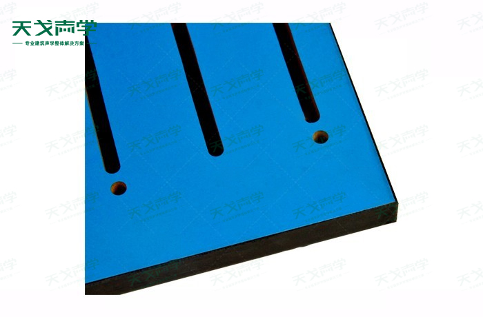 天戈穿孔木質吸聲板飾面顏色及材料選擇性廣,孔徑、孔距可根據客戶要求調整,能很好地滿足客戶多樣化的聲學及裝飾需求,特別是用于演藝中心裝修設計方案中。孔木吸音板對吸聲頻譜選擇性較強,對中低頻有很好的吸聲性能。因此在演藝中心裝修方案中常會在吸聲結構后空腔上填入適量的吸聲棉以提高中、高頻吸聲效果。