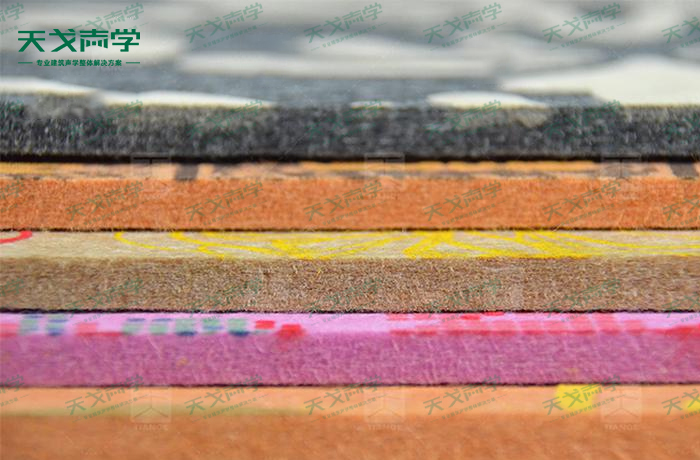 植絨吸音板材質:聚酯纖維+尼龍絨毛+印花顏料