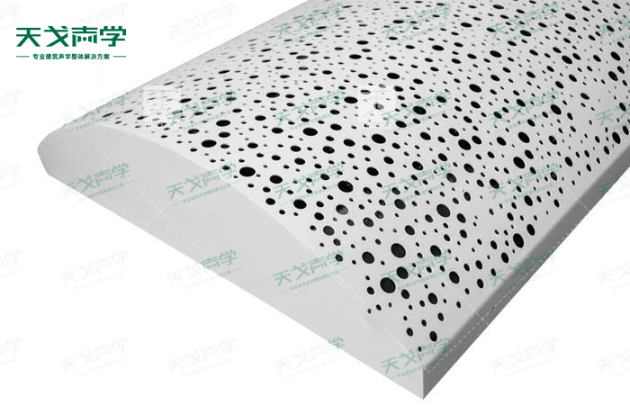 大型會議廳天花空間吸聲體是一種懸掛在頂棚具有高效吸收性能的吸聲材料。大型會議廳天花空間吸聲體一般水平或者垂直吊掛。大型會議廳天花空間吸聲體面積占頂棚總面積的30%-45% 時,其材料的吸聲性能是其他聲學材料吸聲性能的2倍。