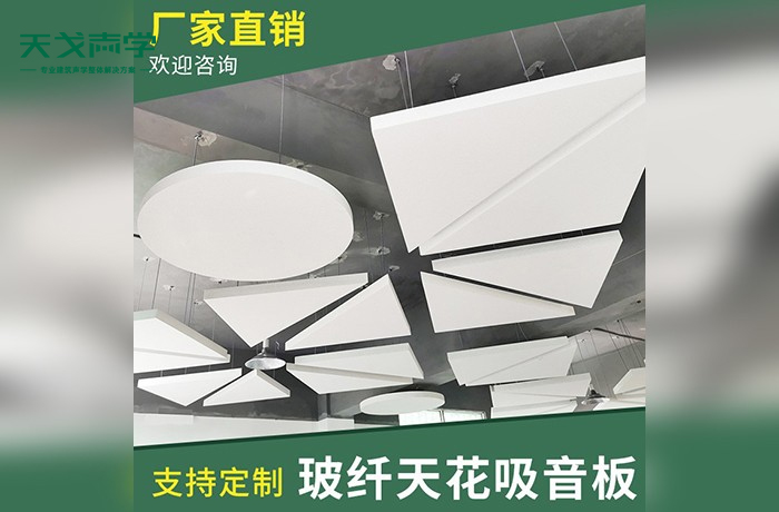 玻纖天花吸音板是一種干式合成高密度玻璃纖維棉板,表面復合裝飾氈制成,背面復合玻纖素氈,四邊做封邊處理。玻纖天花吸音板四邊平直,成直角狀,安裝后表面平行于龍骨面,穩重大方。