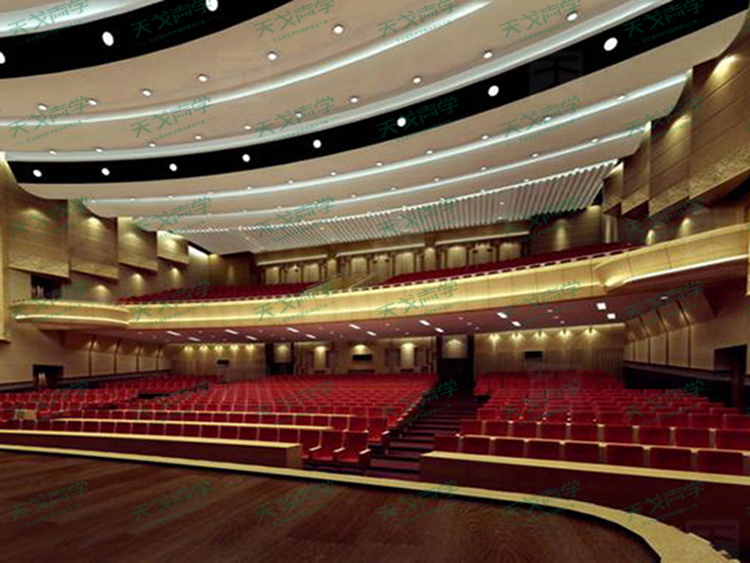 在音樂廳部分,天戈聲學用槽木吸音板、槽鋁吸音板以及大規格軟包吸音板打造了內部空間,保證音樂廳具備出色的空間聲學效果,混響時間在1.5至1.8秒之間,營造出和諧完美的視聽享受,最大程度將臺 上天籟之音傳遞給在場觀眾!