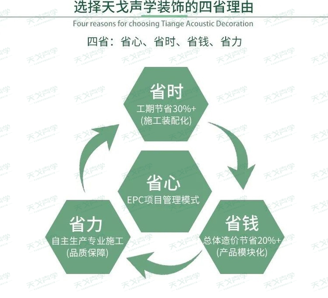 在天戈聲學(xué)EPC項(xiàng)目管理模式下,自身強(qiáng)大的產(chǎn)品自主生產(chǎn)能力、裝配式施工模式、產(chǎn)品模塊化的情況下能夠?yàn)榭蛻籼峁﹥?yōu)質(zhì)的四省服務(wù)——既省心、省力、省時(shí)、省錢。