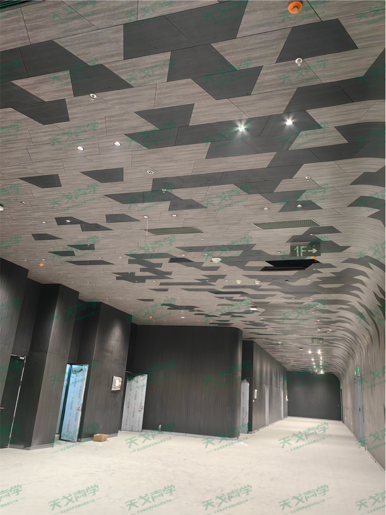 天戈聲學的定制梯形微孔穿孔吸聲板,因其梯形結構設計及便捷的安裝方式,提高吸聲板的安裝質量和效率,確保每一個細節都達到最佳效果。高效的施工不僅縮短了工期,還減少了對科技館正常運營的影響。