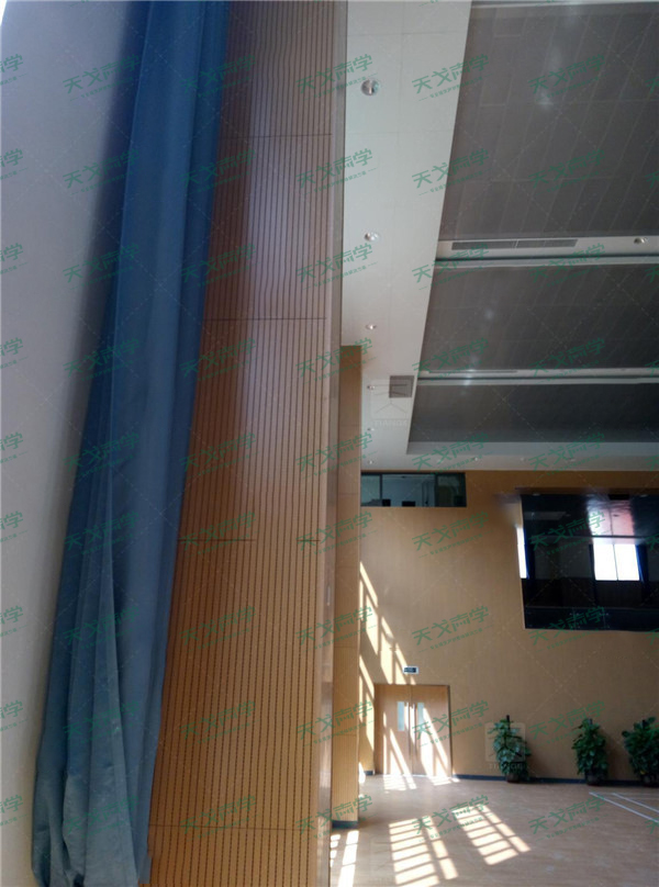 該項目平面面積為1150平方,容積為9700立方。主要是為學生們進行體育活動從能提升學生們的體能素質。所以在聲學環境中是不可忽視的,該項目為我司做深化聲學方案從隔聲先考慮,可達到在進行活動中不影響樓上,樓下的正常上課。在場管內四周墻身、天花都采用隔音一系列產品打造房中房結構,與采用專業隔音門。通過處理后隔絕了55分貝的音量,隔音門隔絕了45分貝以上的音量。不再讓噪聲影響其他課室正常使用。再到場館內避免聲學缺陷,例如:回聲,多重回聲,顫動回聲等聲學缺陷。我司采用在墻身四周總面積1100平方上安裝吸聲結構表面采用槽木吸音板28/4,穿孔率達到9%.通過處理后優化好場館內存在的聲學缺陷。讓使用過程中體現出優質聽覺不再為回聲與語言清晰度而苦惱。