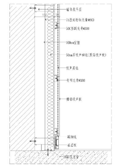 結構:50mm厚吸聲棉包+吸聲黑氈+槽鋁吸音板