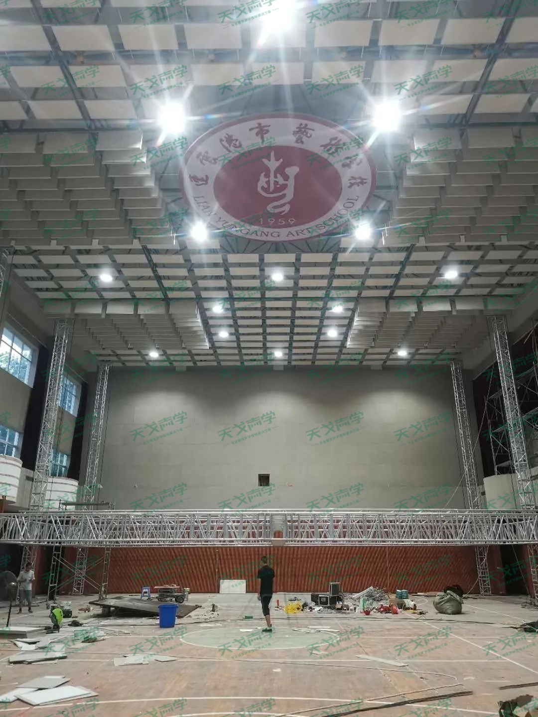 不同的體育館存在的聲學問題有一定的差異,天戈聲學的設計師根據連云港藝術學校體育館的具體情況為其提供了專業的聲學設計方案。方案確定了體育館使用的聲學材料,以及聲學材料的安裝位置。