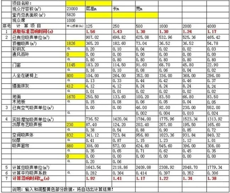 5、音質(zhì)指標符合規(guī)范要求,混響時間預(yù)測值如下: