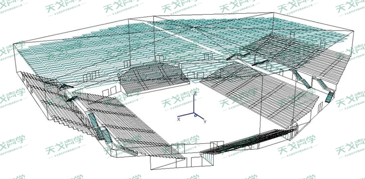 天戈聲學首先依據建筑聲學專業結合室內裝飾設計對永川新區體育館進行細致的聲場分析,詳細了解比賽大廳的室內聲場情況。并通過數據分析后對該體育館的室內裝飾設計提供合適的建議以及進行有效的調整。